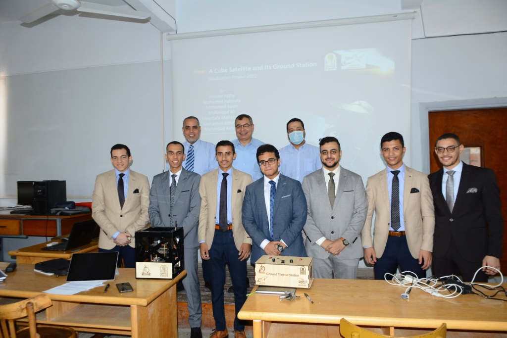 جاء ذلك تعقيباً على تحكيم الدكتور محمد عباس والدكتور عبد الحي محمد لمشروع تخرج بشعبة الاتصالات والإلكترونيات بقسم الكهرباء بكلية الهندسة تحت عنوان "تصميم وتنفيذ قمر صناعي من النوع المكعب مع محطة التحكم الأرضية"، والمشروع تحت إشراف الدكتور عمر عبد الجابر، لمجموعة من الطلاب هم أحمد فتحي ومحمد كبوتة ومحمد صالح ومحمود علي ومصطفى محمد ومحمد عثمان ومحمود أشرف.