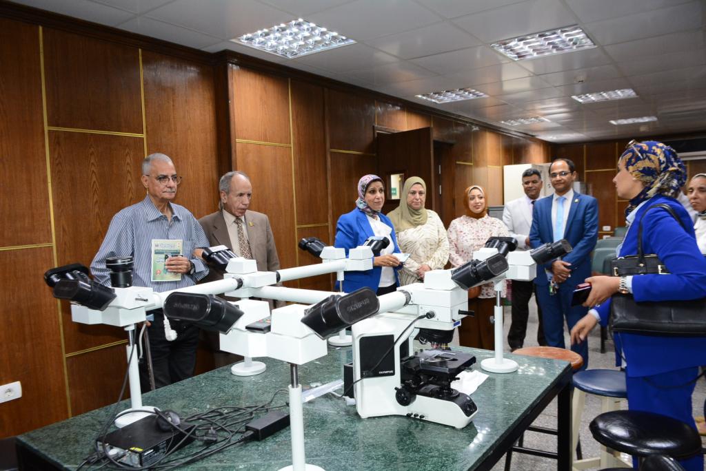 وتفقدت اللجنة كلية الزراعة وكان في استقبالها الدكتور عادل محمد محمود عميد الكلية، والسادة وكلاء الكلية لمختلف قطاعاتها، فضلاً عن السادة رؤساء الأقسام وأعضاء هيئة التدريس، تفقدت اللجنة المعامل المركزية بالكلية والتى تضم معمل البيولوجيا الجزيئية، وزراعه الأنسجة الميكرو بيولوجيي وتحليلات كيميائية، وحقن مجهري فسيولوجي النبات إلى جانب معمل الأراضي للتحليلات والاستشارات الفنية، وزراعة الأسطح والزراعة المائية.