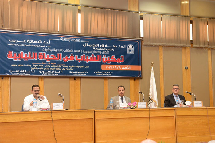 تحت رعاية الدكتور طارق الجمال رئيس جامعة أسيوط ، نظم الدكتور شحاتة غريب شلقامى نائب رئيس الجامعة لشئون التعليم والطلاب اليوم الأحد الموافق 8 من أغسطس أعمال ندوة " تمكين الشباب فى الحياة النيابية "والتي نظمها اتحاد طلاب الجامعة وذلك ضمن احتفالات الجامعة باليوم العالمي للشباب. ، والتى تضمنت استضافة نائبين من نواب مجلس النواب وهم المهندس أشرف رشاد الشريف أمين عام حزب مستقبل وطن ، النائب طارق رضوان رئيس لجنة حقوق الإنسان بالمجلس ، وذلك بحضور نخبة من أعضاء مجلسي الشيوخ والنواب ، وكوكبة من عمداء ووكلاء و أعضاء هيئة التدريس واللجنة العليا للأنشطة الطلابية ، ولفيف من القيادات التنفيذية والشعبية والدينية بالمحافظة ، وحشد من الطلاب من مختلف الكليات.