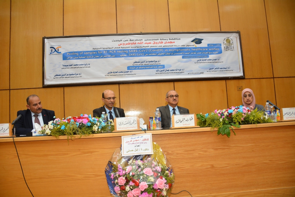 مشيره الى ان لجنة المناقشة والحكم تكونت من كلا من الدكتورة أسماء عبد الناصر أستاذ الامراض المشتركة وعميد معهد بحوث ودراسات البيولوجيا الجزيئية ( مناقش داخلي ), الدكتورة هبة الله جمال راشد أستاذ الباثولوجيا الاكلينيكية ووكيل كلية طب الاسنان لشئون خدمة المجتمع وتنمية البيئة, الدكتور حمدي محمد العارف أستاذ ورئيس قسم البيولوجيا الجزيئية بمعهد بحوث ودراسات البيولوجيا الجزيئية ( بصوت واحد), الدكتورة عزة محمود عز الدين مصطفي أستاذ ورئيس قسم الباثولوجيا الاكلينيكية كلية الطب جامعة أسيوط , كما تكونت لجنة الاشراف من السادة الاساتذة الدكتور حمدي محمد العارف أستاذ ورئيس قسم البيولوجيا الجزيئية بمعهد بحوث ودراسات البيولوجيا الجزيئية , الدكتورة عزة محمود عز الدين مصطفي أستاذ ورئيس قسم الباثولوجيا الاكلينيكية كلية الطب جامعة أسيوط , الدكتورة رانيا محمد عويضة وكيل كلية الطب البيطري لشئون التعليم والطلاب جامعة جنوب الوادي .