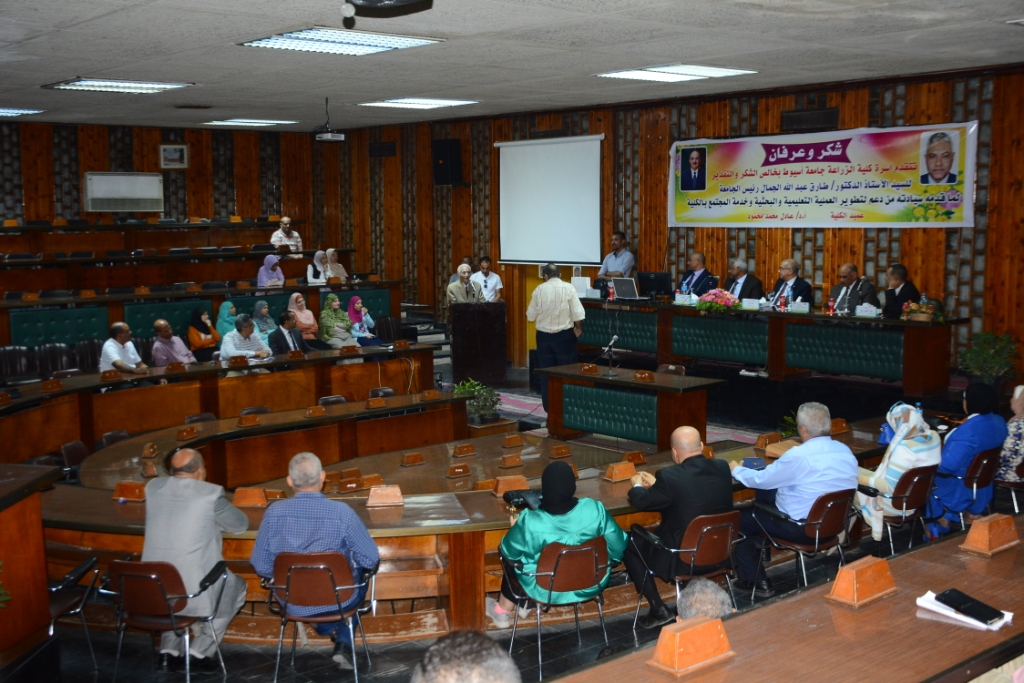جاء ذلك في كلمته خلال احتفالية مجلس كلية الزراعة بتكريم سيادته بمناسبة بلوغه السن القانونية واتمام الفترة الرئاسية لجامعة أسيوط وذلك بحضور الدكتور عادل محمد محمود عميد كلية الزراعة , الدكتور جلال عبد الفتاح الصغير وكيل الكلية لشئون خدمة المجتمع وتنمية البيئة , الدكتور محمد الصغير وكيل الكلية لشئون الدراسات العليا والبحوث , الدكتور عادل علي تمام وكيل الكلية لشئون التعليم والطلاب , فضلا عن السادة رؤساء الاقسام وأعضاء هيئة التدريس ومعاونيهم الي جانب العاملين بمختلف الادارات بالكلية .