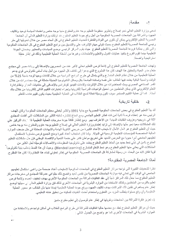 مشروع انشاء الجامعات المصرية المفتوحة