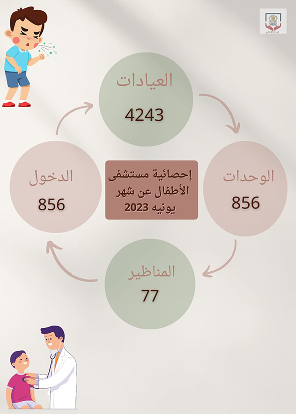 كشف مستشفى الأطفال الجامعي، عن استقباله 4243 حالة مترددة على العيادات الخارجية، خلال شهر يونيو الماضي، تحت رعاية الدكتور أحمد المنشاوي رئيس الجامعة، والدكتور علاء عطية عميد كلية الطب ورئيس مجلس إدارة المستشفيات الجامعية، والدكتور إيهاب فوزي المدير التنفيذي للمستشفيات الجامعية، والدكتور محمد أمير مدير المستشفى.