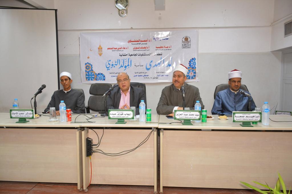 وانطلقت الاحتفالية في قاعة المؤتمرات بالمستشفى الجامعي الرئيسي، بحضور الدكتور إيهاب فوزي، الشيخ سيد محمد عبدالعزيز مدير الدعوة بالمنطقة الأزهرية، والشيخ إبراهيم جمعه مدير التوجيه بمنطقة الدعوة.