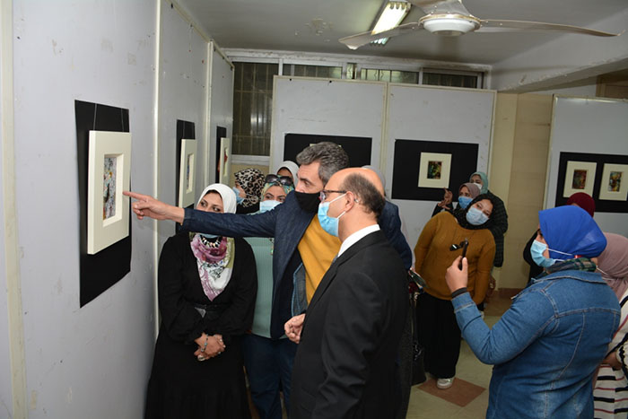 و في مستهل اللقاء أستمع نائب رئيس الجامعة لشرح من الدكتور حسام الدين جلال على مدرس التصميم بقسم التربية الفنية بالكلية لفكرة معرضه بعنوان رؤية تصميمية من خلال التصوير الرقمي ما بين حدود المجال البصري و الرؤية المجهرية "بين ايديك" والذي يوضح كيفية استخدام التصوير الرقمي بكاميرات بسيطة و عن طريق تكبيرها هذه الصور لنجد عالم آخر ملئ بالعناصر الفنية و الجمالية التي تغذى الفنان و تساعده على إشباع رؤيته .