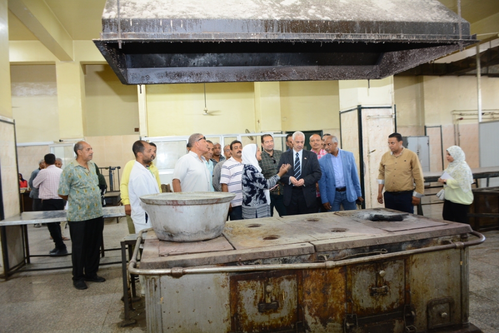 و خلال الزيارة صرح سيادته بأن الجولة إستهدفت الوقوف علي مدي إنتظام أعمال الصيانة داخل المنشأة ومتابعة البنية التحتية وأهمية العمل علي سلامة المنظومة الغذائية المقدمة داخل المطعم المركزي ووصولها لأعلي مستوي من الجودة والنظافة فضلاً عن متابعة التحديث والتطوير القائمة بالمطعم, منوهاً علي أن إدارة الجامعة لا تألوا جهداً في توفير كافة إحتياجات الطلاب والطالبات من أجل توفير بيئة ملائمة لأبناء جامعة أسيوط حرصاً منها علي صحتهم وسلامتهم وتوفير أوجه العناية اللازمة والمراقبة الشديدة لكل أمر يخص الطلاب , مؤكداً ان ذلك يأتي في إطار دور الجامعة في تحقيق منظومة متكاملة لرعاية أبنائها الطلاب .