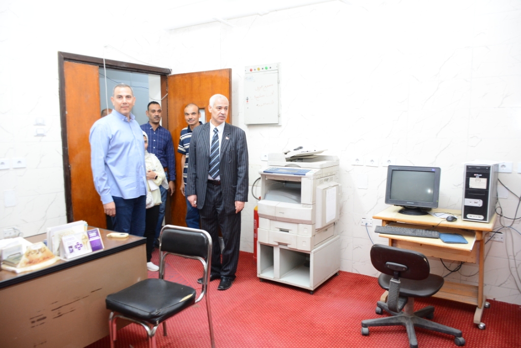 وأعقب ذلك توجه سيادته بزيارة الي كلية الصيدلة وذلك لمتابعة أعمال التطوير بها , مؤكداً أن كلية الصيدلة تعد إحدي القلاع العلمية المتميزة , مشيداً بما تحظي به الكلية من كوادر بشرية متميزة قادرة علي تخريج جيل واعد قادر علي المنافسة في سوق العمل , وخلال الزيارة تفقد سيادته معامل الحاسب الآلي الطلابي وعددها 3 معامل تضم 64 جهاز حاسب آلي مجهزة علي أعلي مستوي وتستخدم المعامل لسكاشن الطلاب كما تساعدهم في عمل الأبحاث , أعقب ذلك تفقده لوحدة الخدمات التكنولوجية ( IT ) , التعليم الإلكتروني ووحدة الأبحاث الطلابية , حجرة صيانة الأجهزة , مشروع تطوير نظم وتكنولوجيا المعلومات .