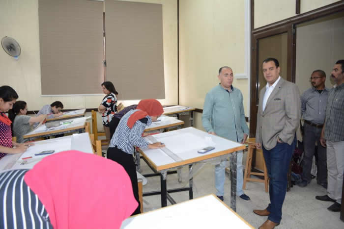 جاء ذلك خلال جولة نائب رئيس الجامعة لتفقد اللجان بكلية الفنون الجميلة مع أول أيام امتحانات نهاية العام الجامعى وذلك بحضور الدكتور محمد ثابت بدارى عميد الكلية ، والدكتور محمد عبد الحكم وكيل الكلية لشئون التعليم والطلاب ، والدكتور محمد حلمى الحفناوى وكيل الكلية لشئون الدراسات العليا والبحوث وعدد من أعضاء هيئة التدريس ومديرى الإدارات المختصة.