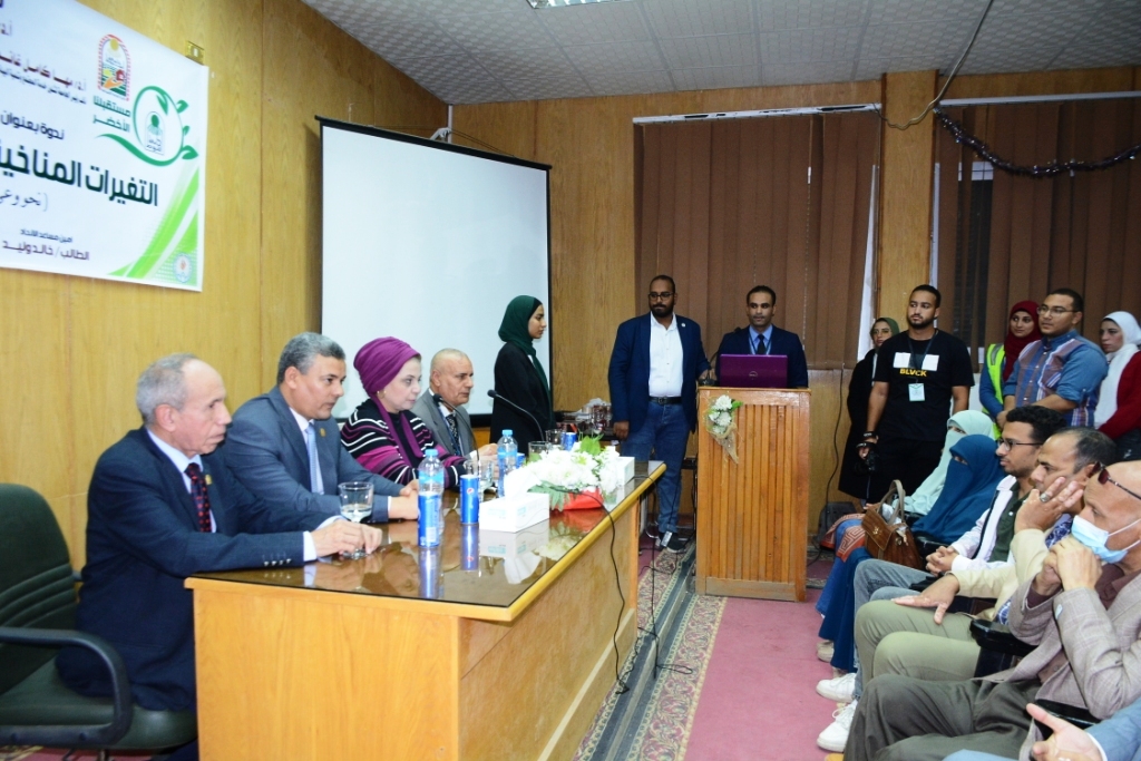 تحت رعاية الدكتور أحمد المنشاوي القائم بعمل رئيس جامعة أسيوط شاركت الدكتورة مها غانم نائب رئيس الجامعة لشئون خدمة المجتمع وتنمية البيئة في إنطلاق أعمال ندوة توعوية تحت عنوان " التغيرات المناخية فرص وتحديات " فضلاً عن افتتاحها معرض المنتجات الخضراء واليدوية بكلية الخدمة الإجتماعية التي جاءت تزامناً مع إعلان الدكتور أحمد المنشاوي رئيس الجامعة أن شهر نوفمبر من كل عام شهراً للبيئة دعماً للمبادرة الرئاسية للحفاظ علي البيئة وتزامناً مع إنطلاق أعمال قمة المناخ بمدينة شرم الشيخ وذلك بحضور الدكتور سعودي محمد حسن عميد الكلية، والدكتور ثابت عبد المنعم مدير مركز الدراسات والبحوث البيئية، والدكتور محمد حسين صالح المدرس المساعد بقسم تنظيم المجتمع بالكلية ومنسق الندوة، والأستاذة هالة فتحي رياض أمين الكلية، والأستاذة دعاء حنفي مدير العلاقات العامة بالكلية، والأستاذة ولاء عبد الفتاح مدير إدارة رعاية الشباب بالكلية، والأستاذ حسين صالح رئيس مجلس أمناء مؤسسة بيت الشباب المصري الراعية للندوة والمعرض، وبمشاركة لفيف من أعضاء هيئة التدريس والعاملين والطلاب بالكلية.