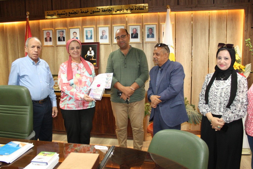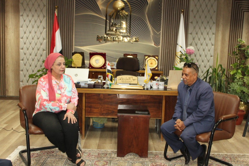 تحت رعاية الدكتور أحمد المنشاوى القائم بأعمال رئيس جامعة أسيوط استقبلت الدكتورة مها غانم نائب رئيس الجامعة لشئون خدمة المجتمع وتنمية البيئة القائمين علي إنجاح القافلة الطبية الخيرية للكشف والعلاج بالمجان تحت شعار " في حب مصر " التي أطلقتها مدرسة الشهيد أحمد جلال والتي جاءت تحت رعاية اللواء عصام سعد محافظ أسيوط , الأستاذ محمد زين وكيل وزارة الصحة , الأستاذ محمد إبراهيم الدسوقي وكيل وزارة التربية والتعليم , الأستاذ محمود إبراهيم معوض مدير عام إدارة أسيوط التعليمية و بحضور الأستاذ هشام نشأت منسق القافلة الطبية , الأستاذ محمد أحمد مدرس اللغة العربية , الأستاذة مروة أحمد معلم أول رياض أطفال , الأستاذة رانيا فيليب فخري مدرسة اللغة الإنجليزية .
