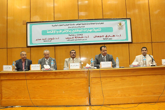 جاء ذلك تعقيباً علي إفتتاح الدكتور شحاتة غريب شلقامي نائبه لشئون التعليم و الطلاب فعاليات البرنامج التدريبي في مجال تنمية مهارات الموظفين بمجال الإشراف و الإقامة بالمدن الجامعية وذلك بحضور الأستاذ مصطفي حسن أمين الجامعة المساعد , و الأستاذ محمود يونس أحمد رئيس الإدارة المركزية للموارد البشرية , و الأستاذ عرفة محمد حلمي مدير عام المدن الجامعية , و الأستاذ خالد عمران أحمد مدير عام إدارة وتنمية المواهب , و لفيف من العاملين بالمدينة الجامعية .
