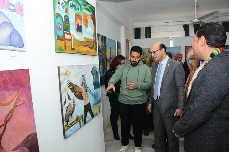 و خلال الافتتاح أبدي الدكتور أحمد المنشاوي إعجابه باللوحات الفنية المعروضة من حيث الإبداع و الأفكار و التصميم و الألوان و التي تدل علي التميز و الرقي والإبداع , مؤكداً في ذلك علي حرص إدارة الجامعة علي تبني ودعم المواهب المتميزة من أبنائها الطلاب ومشيداً في ذلك بدور أعضاء هيئة التدريس في رعايتهم وتشجيعهم وحثهم علي الابتكار والتميز.