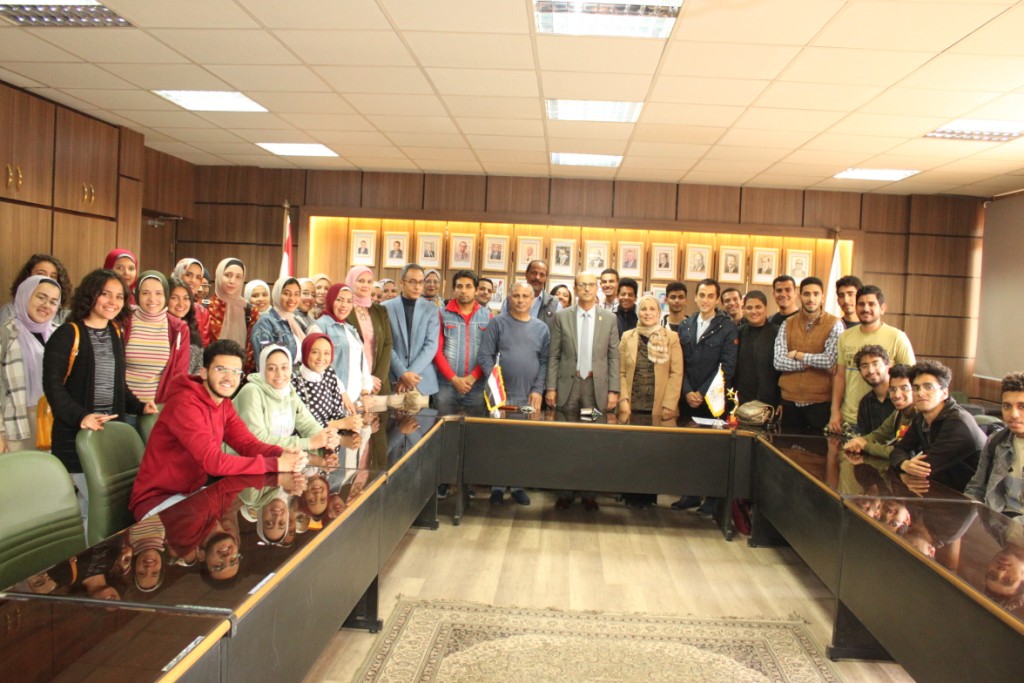 جاء ذلك خلال استقباله لعدد من طلاب وطالبات كلية الفنون الجميلة بالجامعة لتكريمهم لما حصدوه من مراكز مشرفة خلال مشاركتهم في مهرجان الابداع الفني في نسخته العاشرة وذلك تحت رعاية الدكتور طارق الجمال رئيس جامعة أسيوط والدكتور شحاتة غريب شلقامى نائب رئيس الجامعة لشئون التعليم والطلاب والمشرف العام على الملتقى وبحضور الدكتور محمد عبد الحكيم وكيل كلية الفنون الجميلة لشئون التعليم والطلاب والدكتورة غادة النجار مستشار اللجنة الفنية ورئيس قسم الديكور , الأستاذ أحمد عطيفي مدير رعاية الشباب بالكلية , الأستاذ مخلص فاروق أمين الكلية , فضلا عن مشاركة الطالب أحمد عادل فؤاد رئيس اتحاد الطلاب بالكلية , ونائبه الطالب مصطفي متولي , ولفيف من طلاب قسم الديكور من مختلف الفرق الدراسية بالكلية .