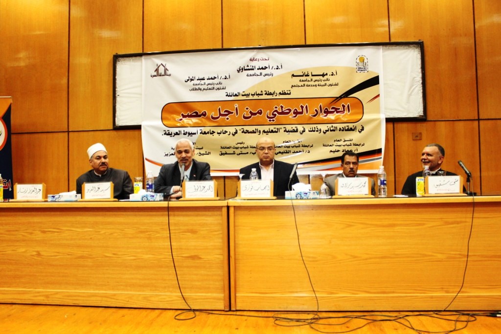 جاء ذلك تعقيباَ على مشاركة الدكتور أحمد عبدالمولى القائم بعمل نائب رئيس جامعة أسيوط لشئون التعليم و الطلاب فى انطلاق وقائع "الحوار الوطني من أجل مصر " و الذى نظمه رابطة شباب بيت العائلة فى نسخته الثانية فى رحاب جامعة أسيوط ليناقش قضايا "التعليم و الصحة " ، و الذى شهد حضور الدكتور إيهاب فوزي المدير التنفيذي للمستشفيات أسيوط الجامعية ، و الدكتور محمد سيد مرزوق وكيل مديرية الصحة ، الأب/ متى شفيق رئيس رابطة شباب بيت العائلة ، و الشيخ سيد العزيز الأمين العام لبيت العائلة المصرية ، و الأستاذ عماد حليم المنسق العام لرابطة شباب بيت العائلة ، و الدكتور أحمد القليعى الأمين العام لرابطة شباب بيت العائلة ، و لفيف من القيادات و مسؤلى و ممثلين عن التعليم و الصحة و بمشاركة شباب بيت العائلة من مختلف مراكز أسيوط وطلاب من اجل مصر.
