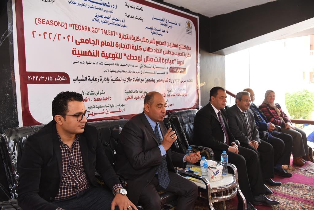 وقد أعرب الدكتور شحاتة غريب عن اعتزازه بكلية التجارة ذات البرامج المميزة التي تساهم في مواجهة الفجوة بين الخريج وسوق العمل، وعن سعادته بأنشطتها العديدة المتنوعة و بحضوره الاحتفال بتنصيب رئيس اتحاد طلابها ونائبه وأمناء لجانه والذي تزامن مع حفل افتتاح المهرجان المجمع لأسر طلاب كلية التجارة "تجارة جوت تالنت"، لموسمه الثاني، وانعقاد ندوة "إنت مش لوحدك" للتوعية النفسية في إطار المبادرة التي أطلقت الأسبوع الماضي بنفس الاسم لتقديم الدعم النفسي لطلاب الجامعة بمشاركة نخبة من أعضاء هيئة التدريس المتخصصين، مشيداً بجميع القائمين على الأنشطة الطلابية بالكلية واستجابتهم المتميزة لتعطش طلاب الكلية لممارسة مختلف الأنشطة بعد انقطاع طويل خلال انتشار جائحة كورونا، ومتمنياً التوفيق لجميع أعضاء اتحاد طلابها.