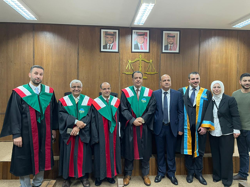 كما تضمنت الزيارة كذلك مناقشة نائب رئيس الجامعة لرسالة ماجستير أخرى للباحث أحمد بشير الحورانى بعنوان" الطرق المستحدثة لتسجيل الدعاوى الحقوقية فى القانون الأردنى" ، وذلك ضمن لجنة مناقشة شملت الدكتور عبدالحكيم طروش جامعة الزرقاء ، الدكتور محمد الزواهرة جامعة الزرقاء ، الدكتور عبدالوهاب المعمرى جامعة الإسراء ، حيث استهدفت الدراسة بيان تطبيقات تسجيل الدعاوى الحقوقية إلكترونياً ونطاقها فى النظام القضائى الأردنى ،وتوضيح إجراءات تسجيل الدعاوى القوقية الكترونياً ، حيث تطرقت الدراسة إلى بيان مفهوم الدعوى الحقوقية بالتعريف بها وبيان تقسيماتها ، والوقوف على أركان وشروط الدعوى الحقوقية ، وبيان مفهوم المحكمة الإلكترونية بالتعريف بها وعرض مستلزمات تمكينها ، وبيان الدعوى الإلكترونية من حيث التعريف بها وتحديد إجراءات تسجيلها.