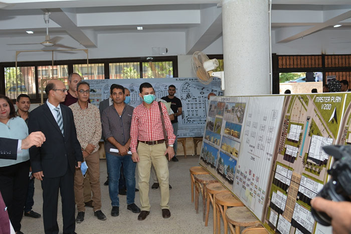وفي سياق متصل أجري الدكتور أحمد المنشاوي جولة تفقدية داخل معارض مشاريع تخرج الطلاب وذلك برفقة لجنة التحكيم المتخصصة و التي تضمنت 23 مشروع مقسمة على 3 نماذج معمارية