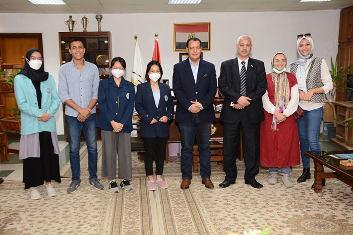 وخلال اللقاء رحب الدكتور شحاتة غريب بضيوف الجامعة مؤكداً على حرص إدارة الجامعة على إقامة برامج تبادل طلابى مع العديد من الجامعات العربية والدولية والتى توفر الجامعة من خلالها كافة التسهيلات للطلاب الوافدين لقضاء فترة دراسية بها أو لقضاء فترة تدريبية لمدة شهر أو أكثر ، كما يتم كذلك تقديم كافة سبل الدعم والرعاية لضمان تمكينهم من تحقيق نتائج مثمرة من زياراتهم للجامعة سواء على الصعيد العلمى أو الثقافى أو الاجتماعى .