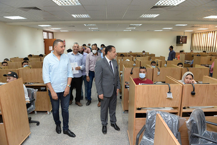 جاءت جولة نائب رئيس الجامعة لاعمال الاختبارات الإلكترونية الموحدة بحضور والدكتور محمد حسين موسى مدير مركز ذوى الإعاقة والأستاذ وائل فتحى مدير صالات الامتحانات ، وعدد من أعضاء مركز المعلومات ومختصين للإشراف والمراقبة على الاختبارات ومساعدة الطلاب.