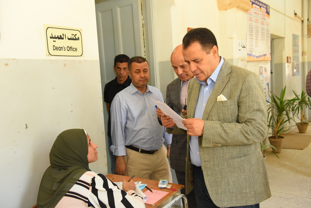 وأشار الدكتور شحاتة غريب أن امتحانات اليوم كان في أغلبها للفرقة الأولى بكلية التجارة بشعبتيها اللغة العربية والإنجليزية والتى استقبله فيها الدكتور محمد أحمد العدوى وكيل كلية التجارة لشئون التعليم والطلاب كما تفقد اللجان بأقسام كلية الآداب والتى استقبله فيها الدكتور مجدى علوان عميد الكلية مع عدد من وكلاء الكلية وأعضاء هبئة التدريس كما تفقد لجان امتحانات كلية التربية للطفولة المبكرة والخدمة الإجتماعية ، والتى تمتد على مدار اليوم في الفترات الصباحية والمسائية حيث اطمأن سيادته على توفير كافة سبل الدعم ورعاية للطلاب الممتحنين ،كما أعرب الطلاب عن رضاهم عن مستوى الامتحانات وجودة ووضوح ورقة الأسئلة مشيراً إلى أنَّه من المقرر التزام الكليات بقرارات مجلس الجامعة بتطبيق نظام البابل شيت في وضع ورقة الامتحانات وذلك ليتمّ تصحيحها إلكترونياً وكذلك التنسيق مع الإدارة الطبية والعيادات داخل الكليات ، كما تفقد سيادته العيادة الطبية الملحقة باللجان للإطمئنان على تواجد جميع الأطقم الطبية وتوفير الأدوية والإسعافات الأولية لمواجهة أى حالات طارئة خلال الامتحانات
