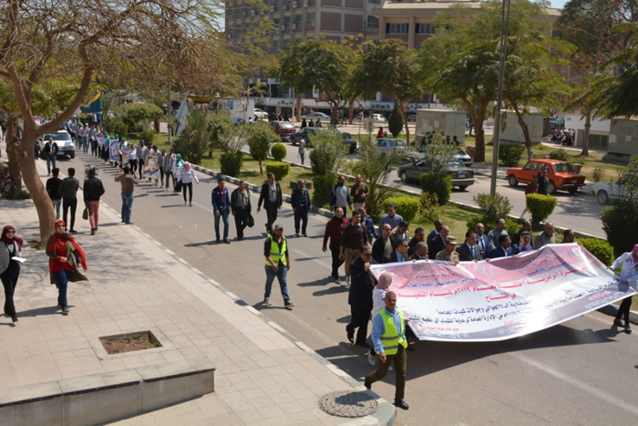 ومن جانبه أكد الدكتور شحاتة غريب أن تلك المسيرة تأتى تزامناً مع إعلان الرئيس عبد الفتاح السيسى رئيس الجمهورية عام 2019 كعاماً للتعليم ، وذلك انطلاقاً من حرص الجامعة على تفعيل دور الأنشطة الطلابية ودعمها وذلك باعتبارها أحد العناصر الأساسية فى العملية التعليمية وعامل رئيسي فى توصيل العديد من الرسائل الهامة فى شتى القضايا التنموية والمجتمعية وعلى رأسها قضية التعليم والتي أولت لها القيادة السياسية أهمية خاصة وذلك باعتباره عنوان لتقدم ورقى المجتمعات ، كاشفاً إن إدارة الجامعة لا تألوا جهداً فى تطوير الأنشطة الطلابية والتي تشكل وجدان الطلاب وعقيدتهم .