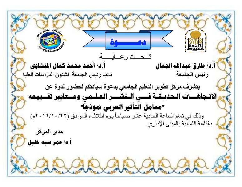 ندوة بعنوان لاتجاهات الحديثة في النشر العلمي ومعايير تقييمه