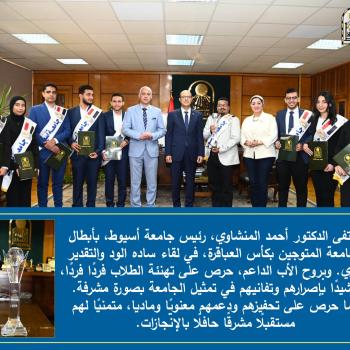 الدكتور المنشاوي يحتفي بالفائزين بكأس العباقرة من شباب جامعة أسيوط ويدعمهم مادياً وأدبياً