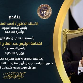 رئيس جامعة أسيوط يهنئ فخامة الرئيس السيسي ووزير الداخلية بمناسبة عيد الشرطة