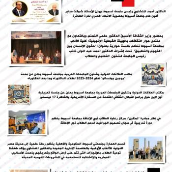 بالانفوجراف .. حصاد جامعة أسيوط خلال أسبوع في الفترة من 7 ديسمبر حتى 12 ديسمبر 2024