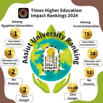 جامعة أسيوط تتصدر الجامعات المصرية وتحتل المرتبة 75 عالمياً في مجال المحافظة على المياه في التصنيف العالمي THE Impact 2024 الإنجليزي لمعايير الاستدامة