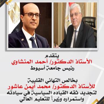 رئيس جامعة أسيوط يهنئ الدكتور أيمن عاشور بعد تجديد الثقة للاستمرار بقيادة حقيبة وزارة التعليم العالي