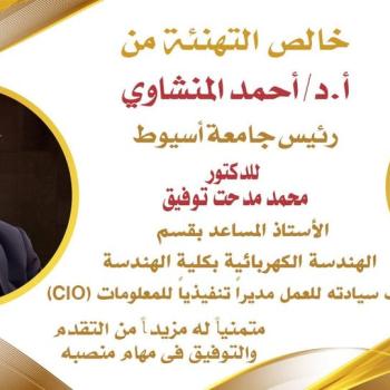 يتقدم الأستاذ الدكتور أحمد المنشاوي رئيس جامعة أسيوط؛ بأرق التهاني القلبية بمناسبة حلول عيد الأضحى المبارك ...
