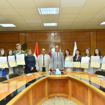 الدكتور المنشاوي يكرم وفد جامعة بيتاجورسك الروسية فى ختام زيارتهم العلمية والثقافية لجامعة أسيوط