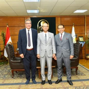 د. المنشاوي خلال استقباله لرئيس جامعة حورس- مصر: مستشفيات جامعة أسيوط خطت خطوات ملموسة في التطوير والتجديد لتقديم أفضل الخدمات الطبية والعلاجية