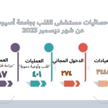 خلال ديسمبر الماضي.. مستشفى القلب بجامعة أسيوط يستقبل ٣٤٤٥ حالة بالعيادات