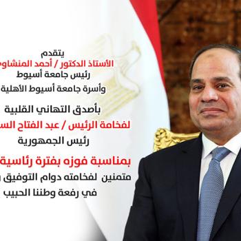 رئيس جامعة أسيوط يهنئ فخامة الرئيس السيسي بفوزه بولاية رئاسية جديدة