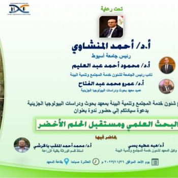 ندوة بعنوان البحث العلمي ومستقبل الحلم الاخضر ينظمها قطاع شئون خدمة المجتمع وتنمية البيئة بمعهد بحوث ودراسات البيولوجيا الجزيئية