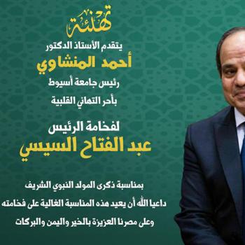 رئيس جامعة أسيوط يهنئ الرئيس السيسي بمناسبة ذكرى المولد النبوي الشريف