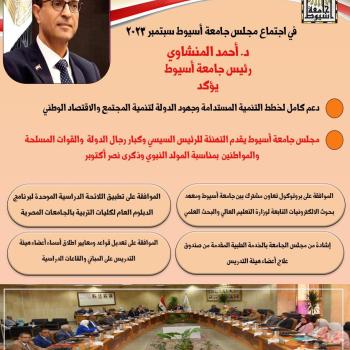 في اجتماع مجلس جامعة أسيوط سبتمبر 2023 برئاسة الدكتور أحمد المنشاوي