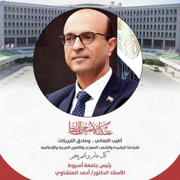 تهنئة الدكتور أحمد المنشاوي رئيس جامعة أسيوط لأسرة الجامعة بمناسبة عيد الأضحى