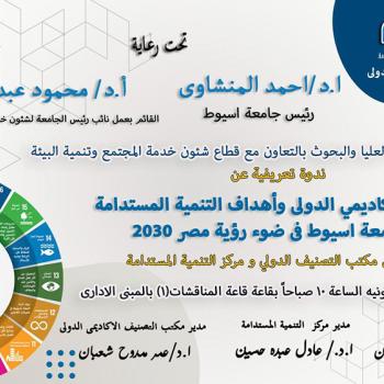 18يونيه الجاري .. ندوة بجامعة أسيوط حول:" التصنيف الأكاديمي الدولي وأهداف التنمية المستدامة .. ودور جامعة أسيوط في ضوء رؤية مصر 2030 "