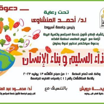 جامعة أسيوط تنظم ندوة توعوية حول "الغذاء السليم وبناء الإنسان " تزامناً مع اليوم العالمي لسلامة الغذاء