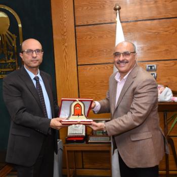 رئيس جامعة أسيوط يتسلم درعاً تذكرياً مقدماً إهداءً من رئيس جامعة مؤتة الأردنية