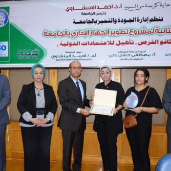 جامعة أسيوط تشهد انطلاق المرحلة الثانية من مشروع تطوير جهازها الإدارى والذى نظمته إدارة الجودة والتميز بالجامعة بعنوان " تكافؤ الفرص والتأهيل للاعتمادات الدولية"