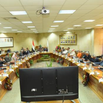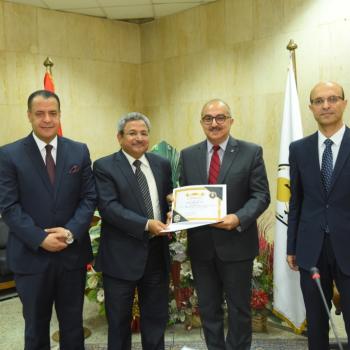 رئيس جامعة أسيوط يكرم العميد السابق لكلية التجارة ويرحب بالعمداء الجدد خلال اجتماع مجلس الجامعة