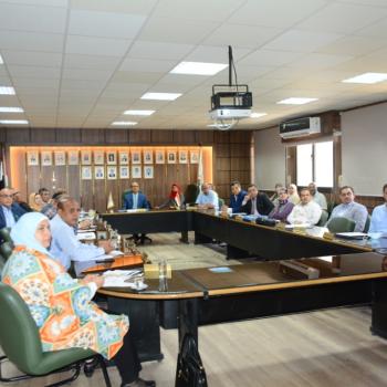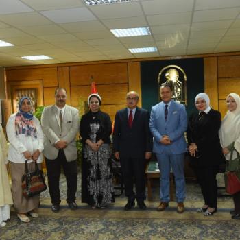 رئيس جامعة أسيوط يستقبل أعضاء هيئة تدريس قسم الاقتصاد المنزلى لعرض رسالة ماجستير حول "إعادة هيكلة منظومة ملابس هيئة التمريض و أطباء مستشفى جامعة أسيوط "