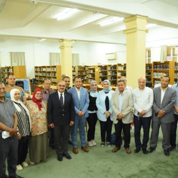 رئيس جامعة أسيوط ونائبه فى زيارة لكلية الآداب لافتتاح مكتبة الكلية بعد التطوير والاطمئنان على سير الامتحانات