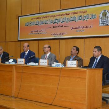 نائب رئيس جامعة أسيوط يشهد انطلاق اعمال ورشة عمل تحت عنوان " مهارات التواصل الفعال والتعامل مع الاخرين للسادة الموظفين بمركز خدمات الرسائل العلمية وقاعات الاستذكار الهادىء بالجامعة "