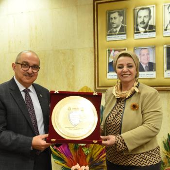 قطاع خدمة المجتمع يقدم درع المؤتمر الدولي الحادي عشر للتنمية والبيئة لرئيس جامعة أسيوط تكريماً وتقديراً لجهوده في دعم ورعاية المؤتمر