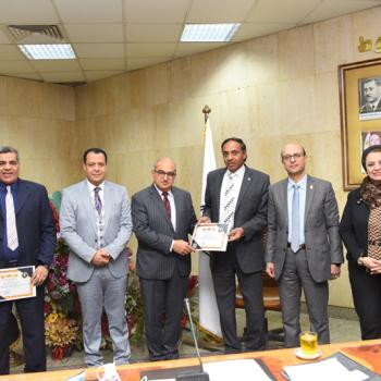 مجلس جامعة أسيوط يكرم اثنين من عمداء الكليات بعد انتهاء فترة عمادتهم لبلوغهم السن القانونية للمعاش